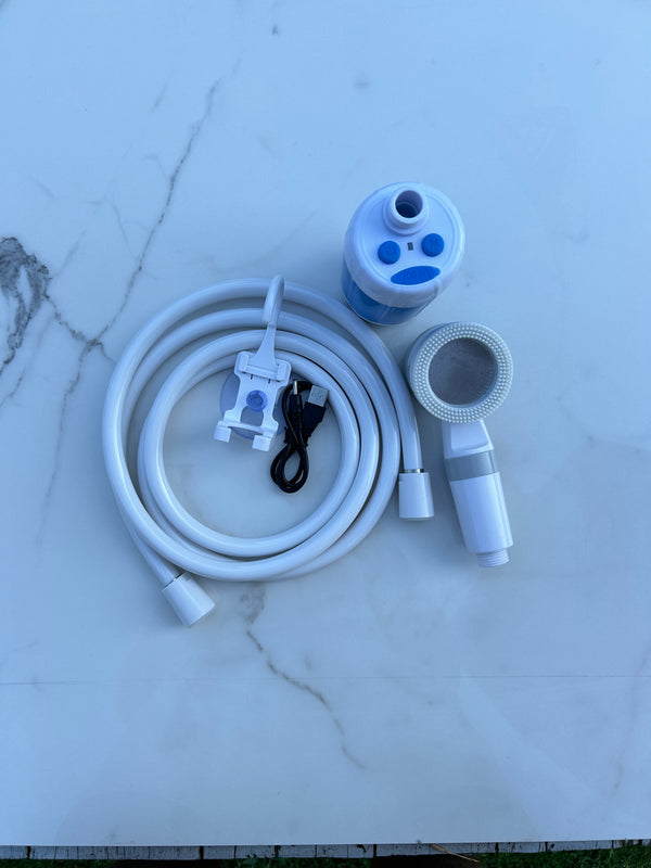 Gör vardagen enklare med vår multifunktionella vattenpump – perfekt för stall, camping, trädgård och bilvård. Pumpen drivs enkelt via en hink, dunk eller sjö och har två smarta lägen: Blått läge – sparar vatten, perfekt när du vill fylla mindre hinkar eller använda ett mjukare flöde. Grönt läge – fullt tryck, när du behöver mer vatten snabbt, t.ex. vid tvätt eller större hinkar.